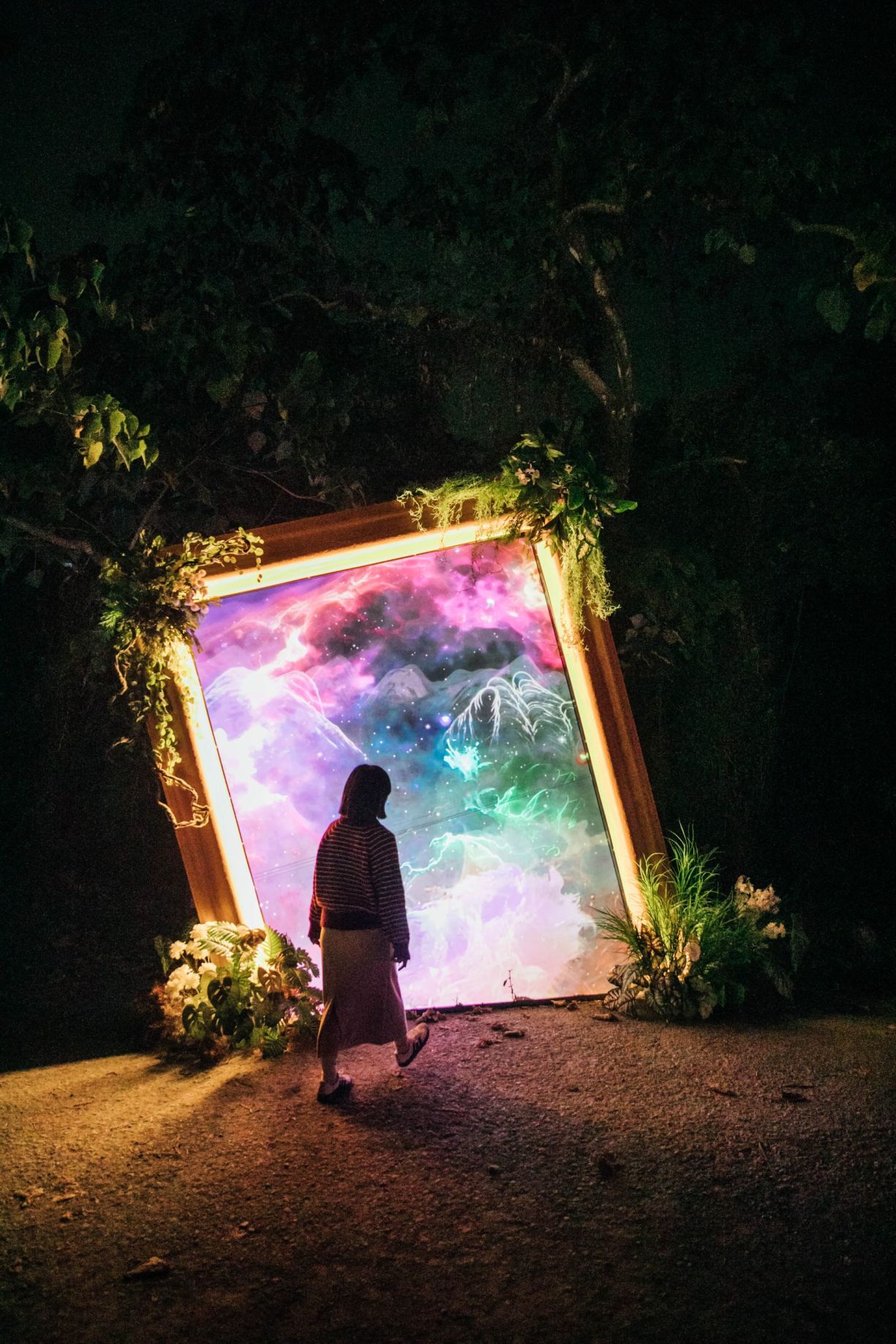 當夜色緩緩降臨,旅程從「序幕」展區揭開帷幕。入口設置大型光影裝置拱門,結合森林意象與主視覺,營造如夢初醒般的氛圍,象徵夜間旅程的點燃與意識甦醒,邀請參與者放下日常、開啟一場與自己與自然的對話。