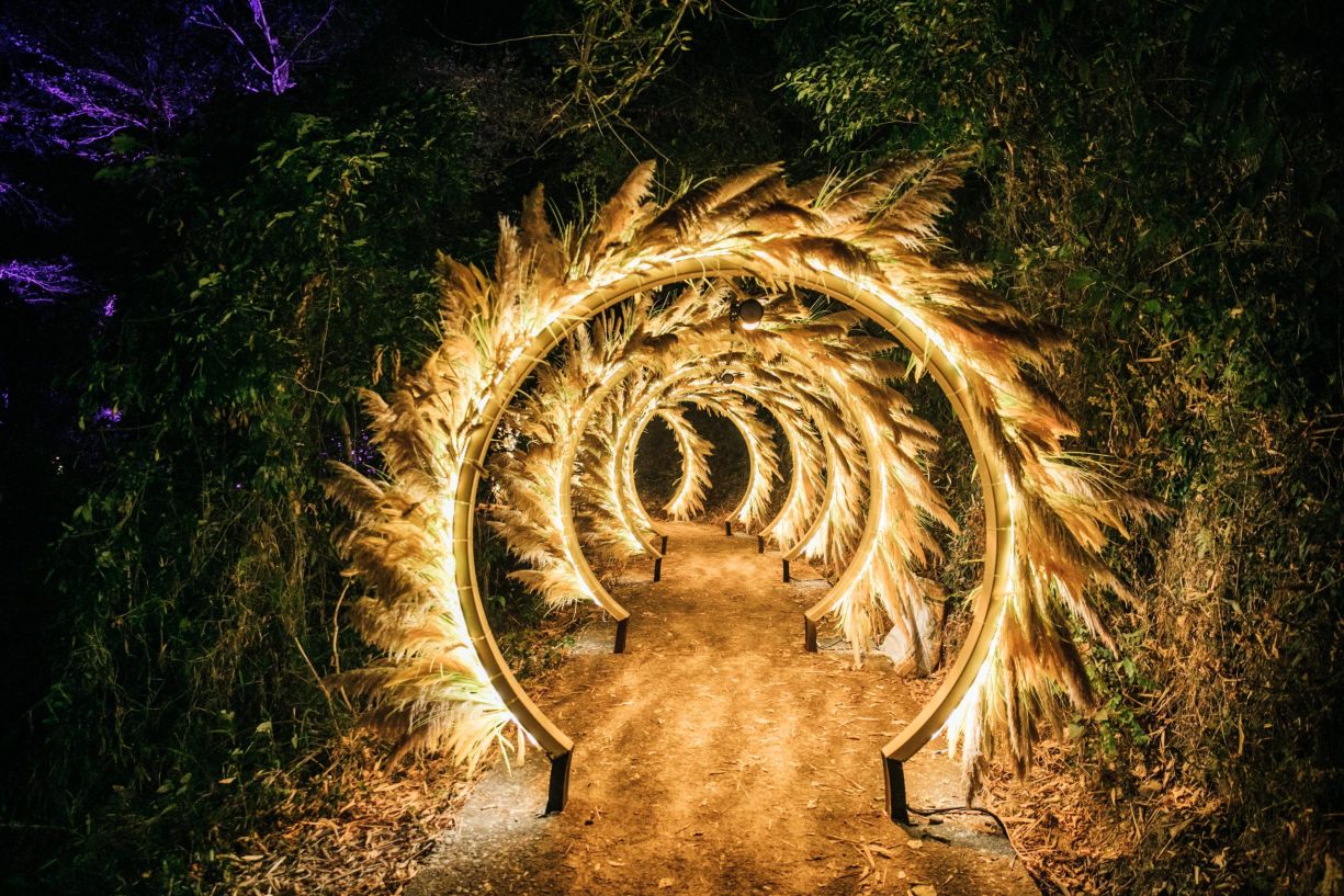 走進林間小徑,引導五感逐步甦醒,沿路可見以高樹在地農產為靈感設計的燈光裝置,讓五感與微光共舞,感受大地的生命氣息。